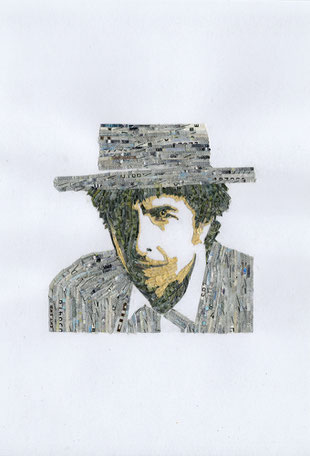 Warum ich dann Dylan portraitiere? Es handelt sich um eine Auftragsarbeit und ich muss gestehen, dass ich mich anfänglich schwergetan habe, jemanden zu schreddergeldisieren, zu dem mir weitestgehend der Zugang fehlt. Als Freiberuflerin kann ich natürlich Aufträge ablehnen; sollte ich auch, wenn ich weiß, dass ich mit dem Ergebnis nicht zufrieden sein werde, weil ich von vornherein nur halbherzig drangehe.